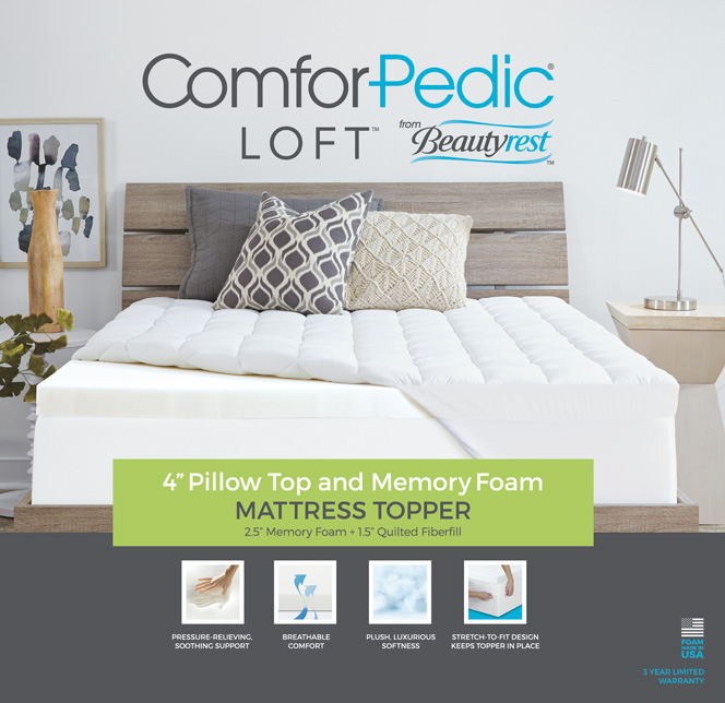 Elevate your sleep experience with the ComforPedic Loft Memory Foam series of mattress and pillow products. This upscale Gel Memory Foam solution provide three layers of support for a luxuriously comfortable sleep experience. The unique gel memory foam has increased airflow through the foam to keep you cool while guaranteeing to conform to the shape of your body to offer pressure point relief. The Mattress product also includes a gel that has a low-profile foundation.